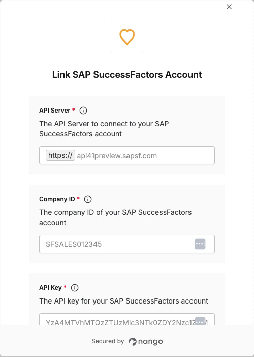 To authenticate with SAP SuccessFactors, you need:- API Server - The base URL of your SAP SuccessFactors OData API instance.