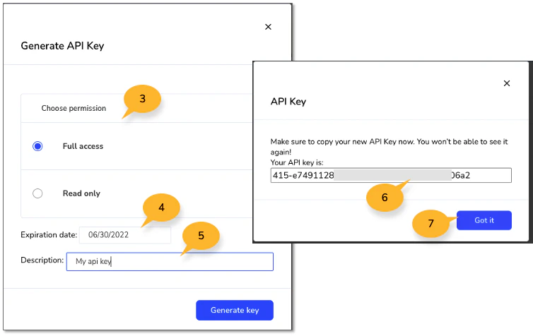 Once your API Key is generated, ensure you copy it to a secure location as it won’t be shown again.