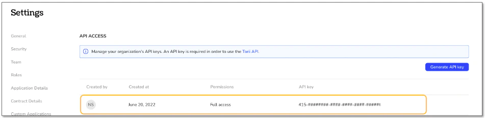 This guide will walk you through generating your API Key in Torii.