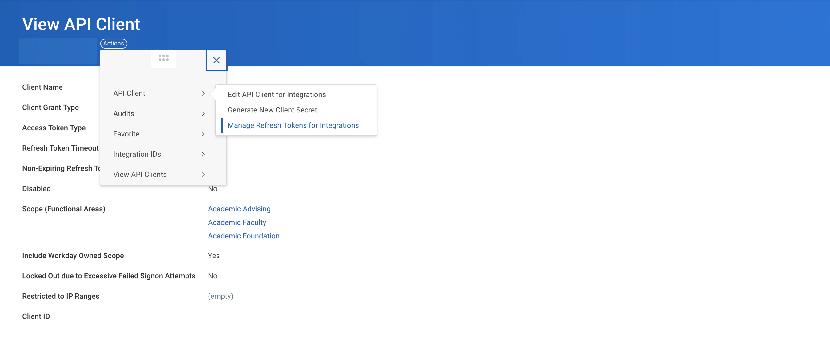 1. Navigate to Action > API Client > Manage Refresh Tokens for Integrations