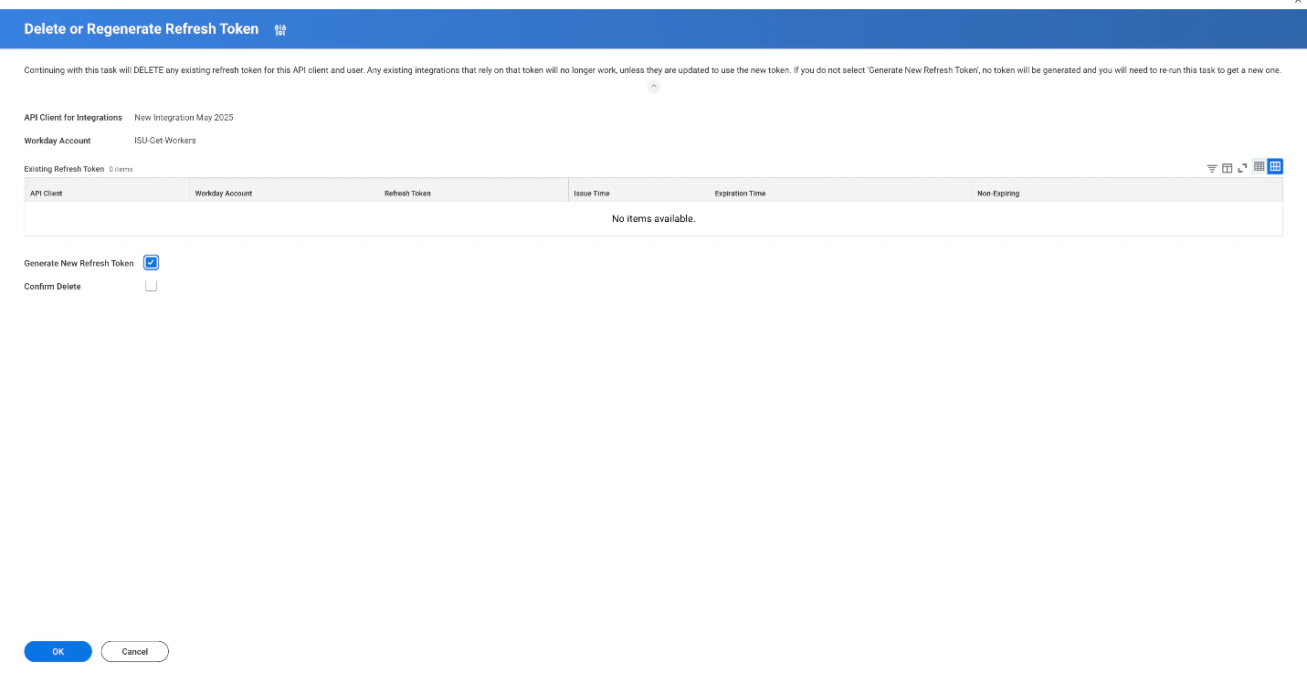1. Copy the new Refresh Token - this will be required to create a Workday connection