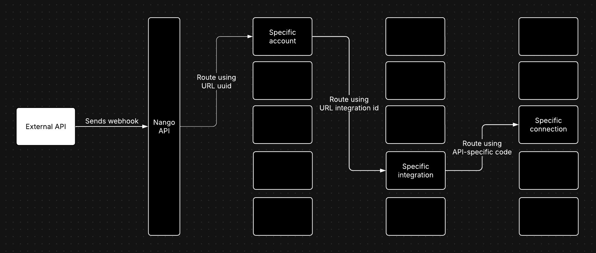 When Nango receives a webhook from an external API, it first reconciles the webhook with the appropriate integration and connection.