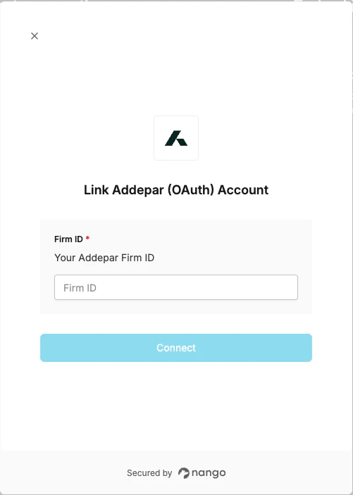 To authenticate with Addepar, you will need:- Firm ID – A unique identifier for your Addepar firm, found in the API URL.