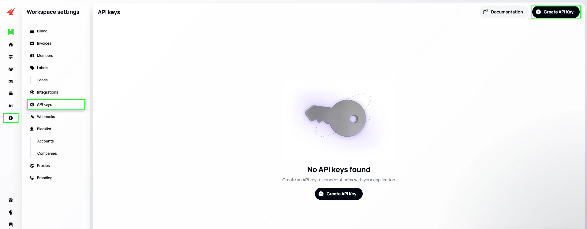 - Log in to your Aimfox dashboard and go to your Workspaces list.