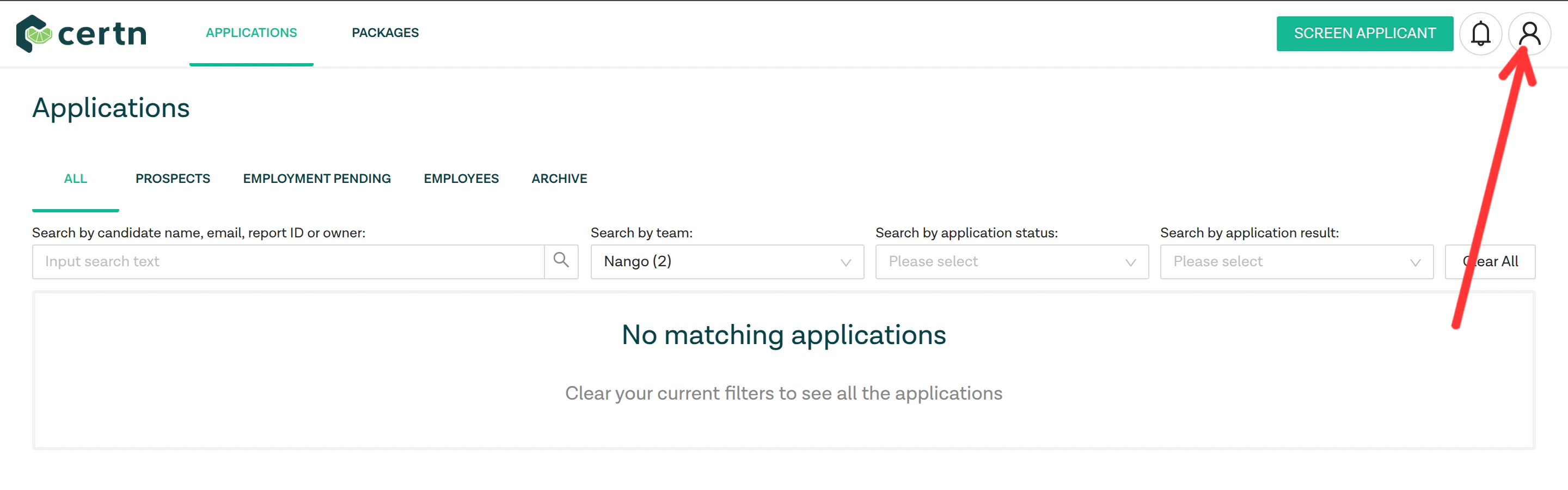 - Log in to your Certn dashboard and click on the Profile icon on the top right corner of the screen.
