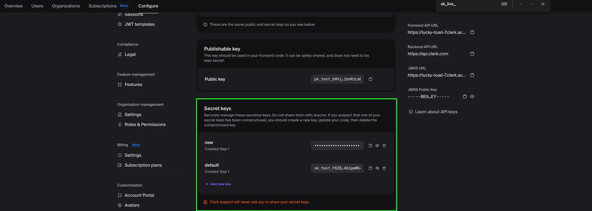 Step 1: Retrieve your Clerk Secret Key