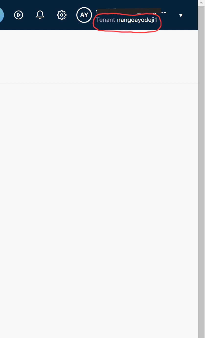 - Once logged in to you Cloudentity dashboard, at the top right corner, you should find the tenant ID in the format