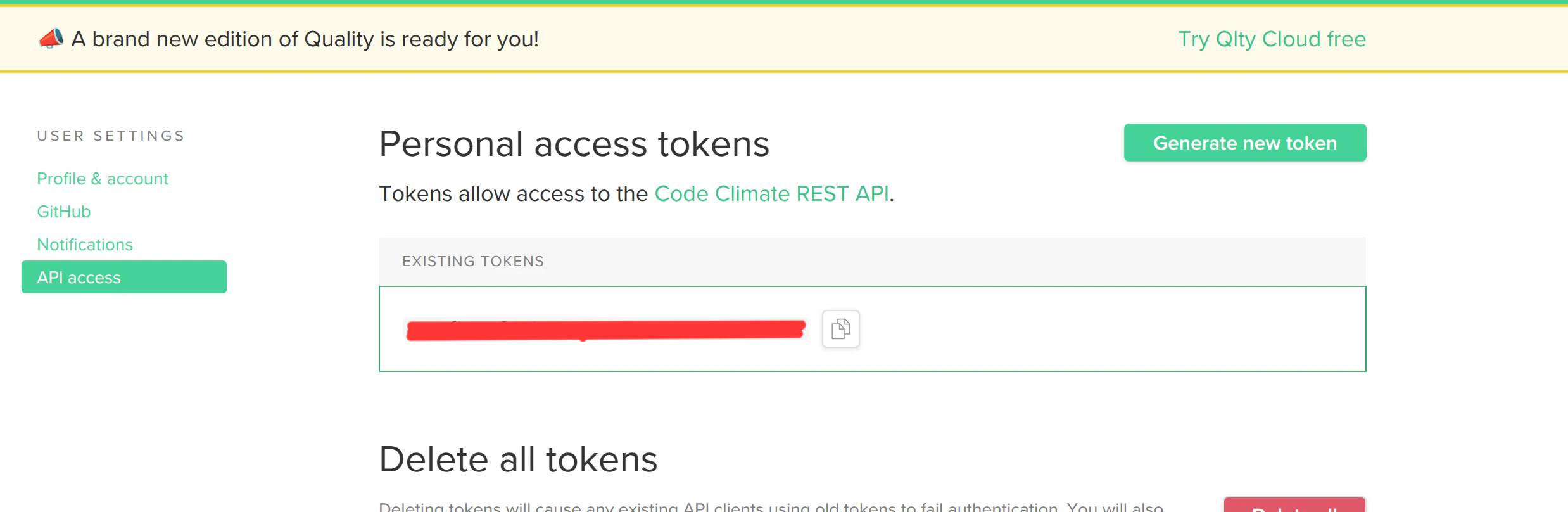 - The generated token will be displayed on the screen. Copy and store it securely, as it will not be visible again after you leave the page.