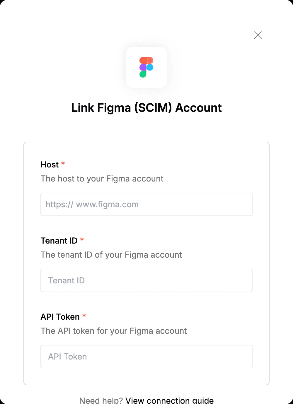 To authenticate with Figma (SCIM), you need:- Host - The base domain for API requests.