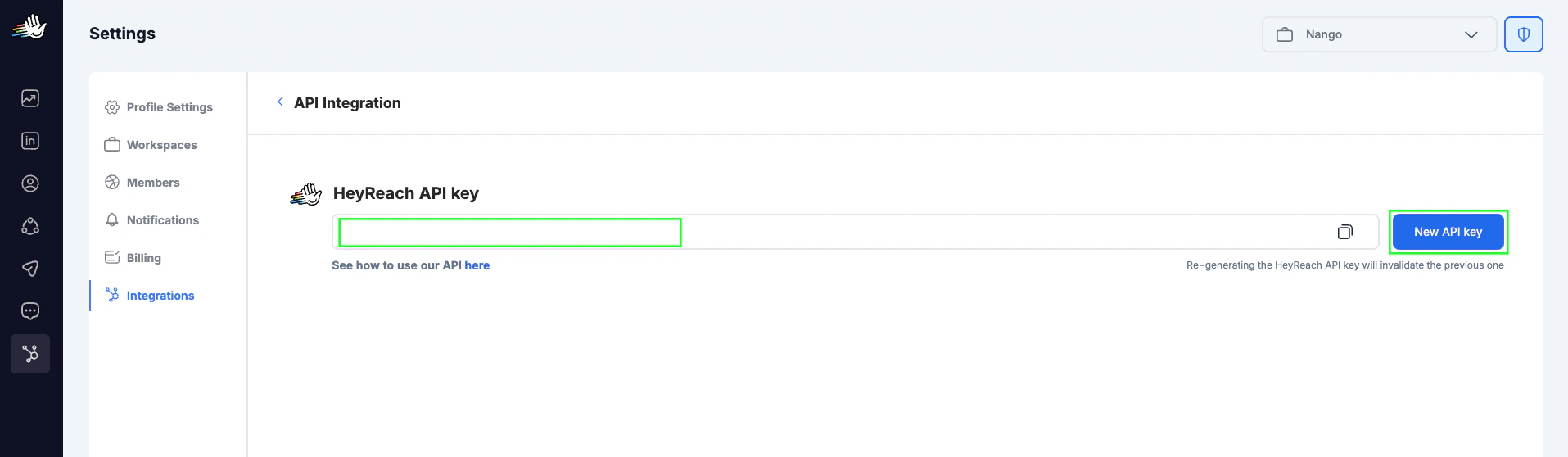 1. API Key - A key that grants Nango permission to interact with the HeyReach API.