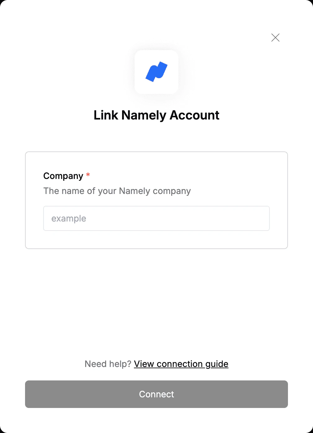 https://and before.namely.com. For example, if the URL in your address bar ishttps://example.namely.com, your Company Name isexample.