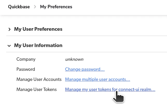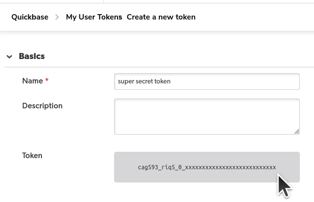 2. User Token - A token that grants Nango permission to interact with Quickbase’s APIs resources and services.