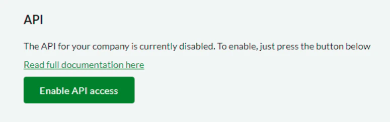 - Click ENABLE API ACCESS to activate API access and generate your unique API key