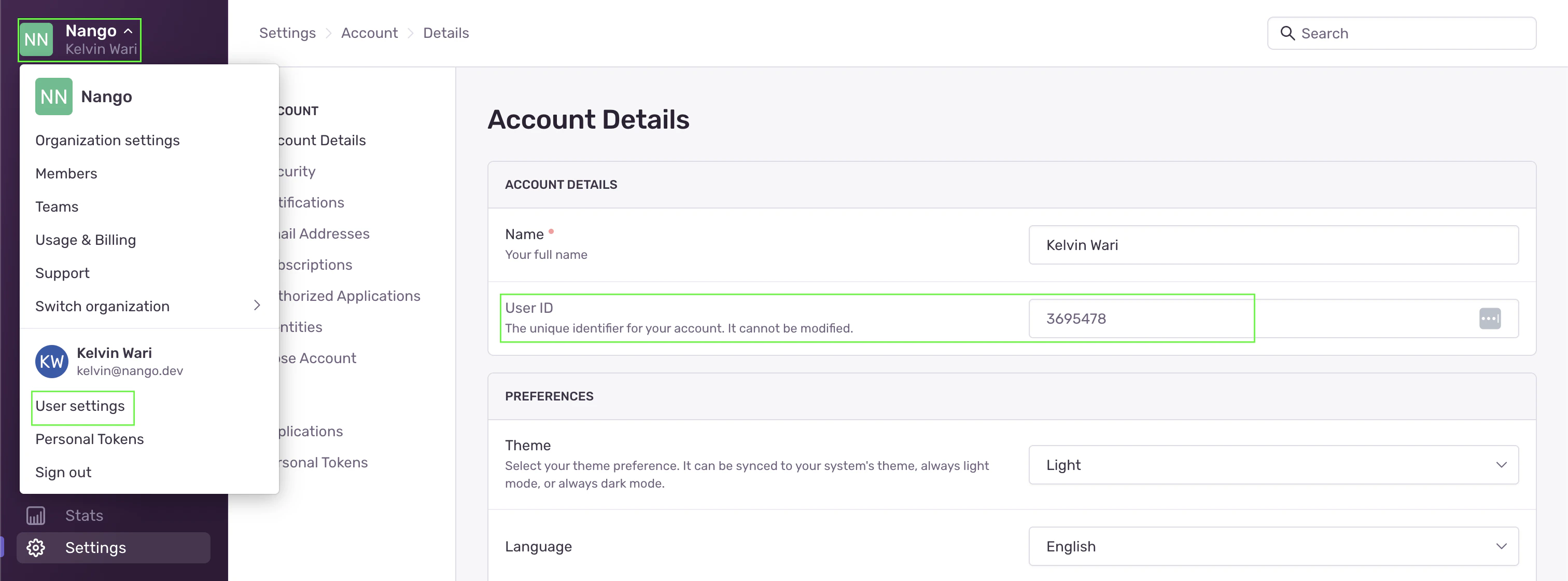 - Under Account Details, you’ll find your User ID.