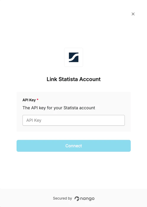 1. API Key - A key that grants Nango permission to interact with Statista’s API resources and services.