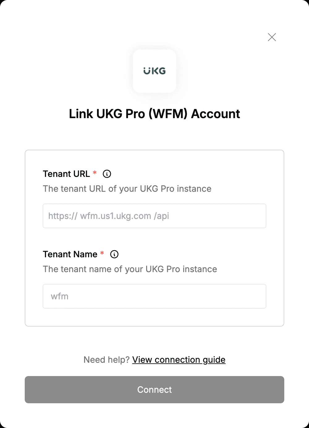 • You must have a provisioned tenant account with UKG Pro (Workforce Management).