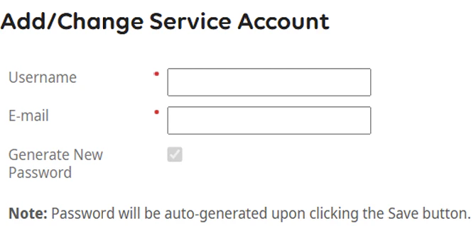 To create a service account:- On the Service Account Administration page, click the Add (+) button located at the top right of the page