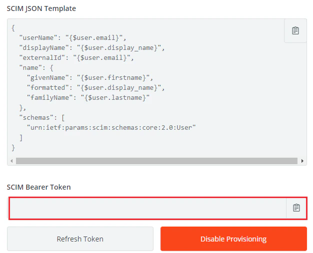 1. Copy the SCIM Bearer Token.