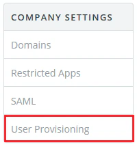 1. Under COMPANY SETTINGS, select User provisioning.