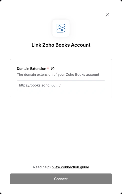To authenticate with Zoho Books, you need:- Domain Extension - This extension indicates the data center where your account is hosted.